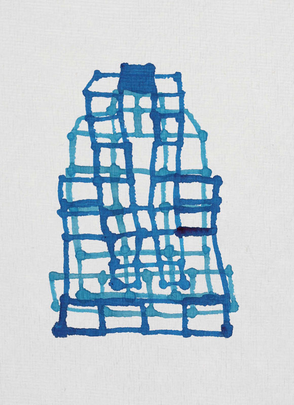 Cityscape Istanbul, 2011 Blue ink on paper 18.5 × 13.5 cm